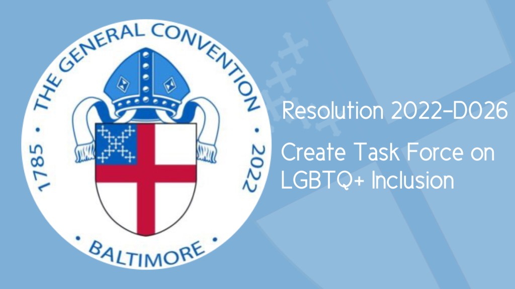 Resolved, That the 80th General Convention direct the Presiding Bishop and the President of the House of Deputies to appoint jointly a Task Force on LGBTQ+ Inclusion, consisting of not more than 14 people, who represent the diversity of the LGBTQ+ members of this Church; and be it further